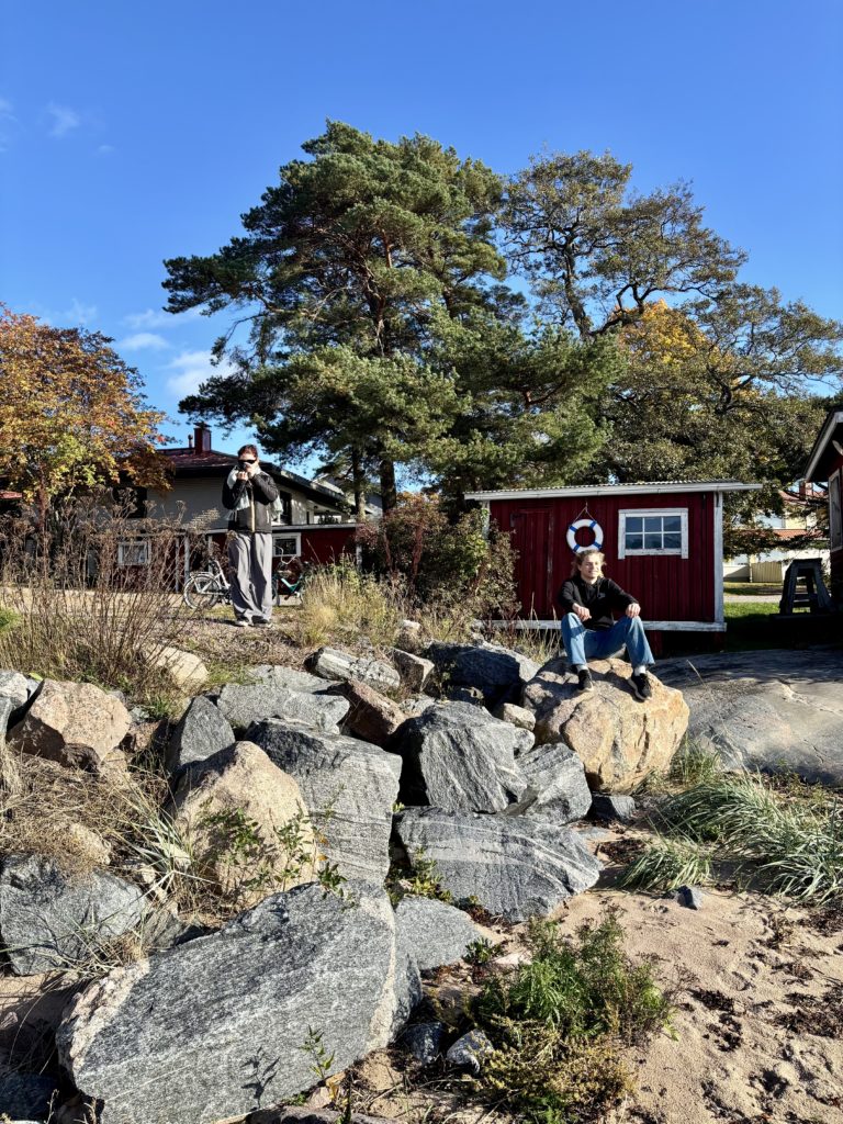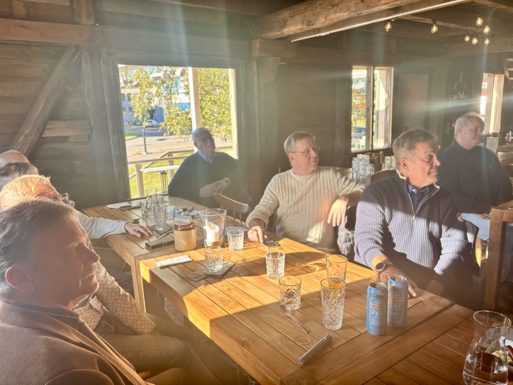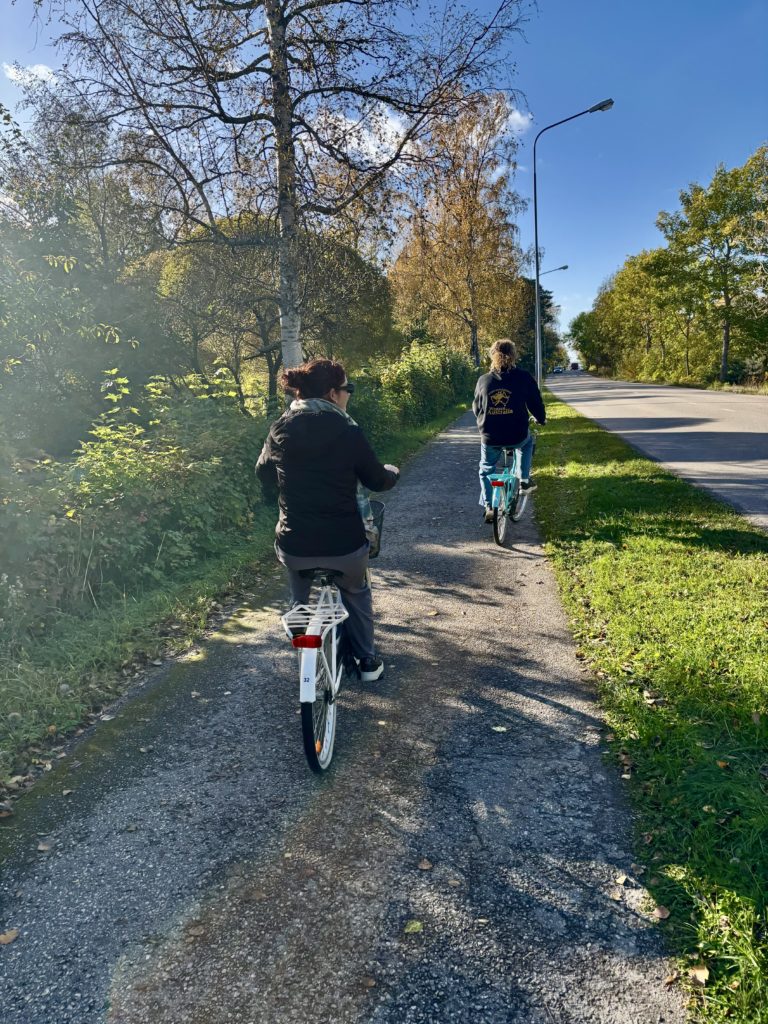 Efter en utsökt trerätters lunch tog klubbpresident Timo Gasché med utbyteseleverna på en cykeltur runt Hangö. I strålande höstsol, som nästan kändes som sensommar (☀️ i Hangö skiner ju alltid solen!), besöktes flera av stadens mest kända platser. Turen avslutades med en paus på Gunnarsstrand, innan gruppen cyklade tillbaka – fyllda av nya intryck och trevliga samtal längs vägen.